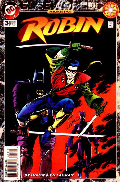 No Túnel do Tempo/ Elseworlds, em um universo alternativo, no século 19, um Robin protege seu senhor feudal do mesmo grupo de ninjas que no passado mataram seu mentor